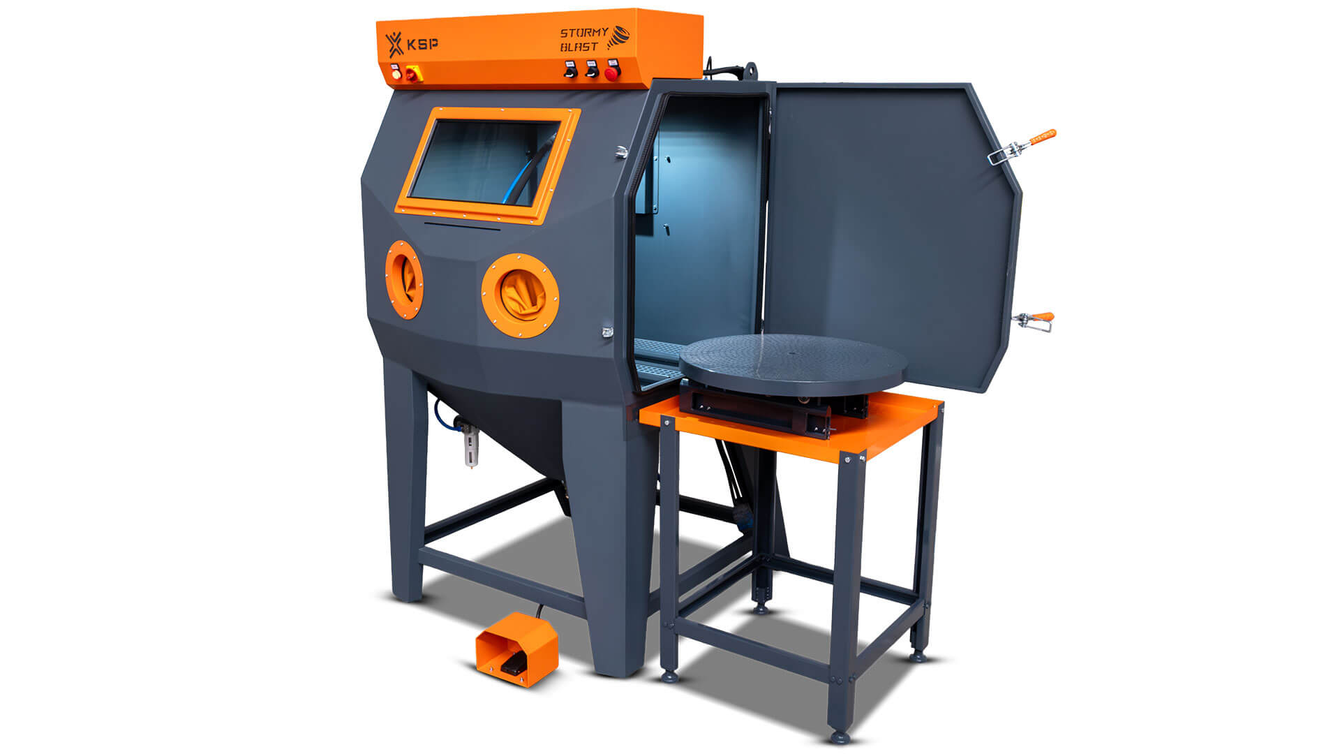 KSP Makine’nin geliştirdiği StormyBLAST A1000, yüksek performanslı kumlama tabancası ve döner sepet sistemiyle metal parçalar üzerindeki pas, boya ve yüzey kirlerini etkili şekilde temizler. Ayarlanabilir basınç sistemi, geniş çalışma alanı ve güçlü filtrasyon teknolojisiyle güvenilir, verimli ve uzun ömürlü bir kumlama çözümü sunar.