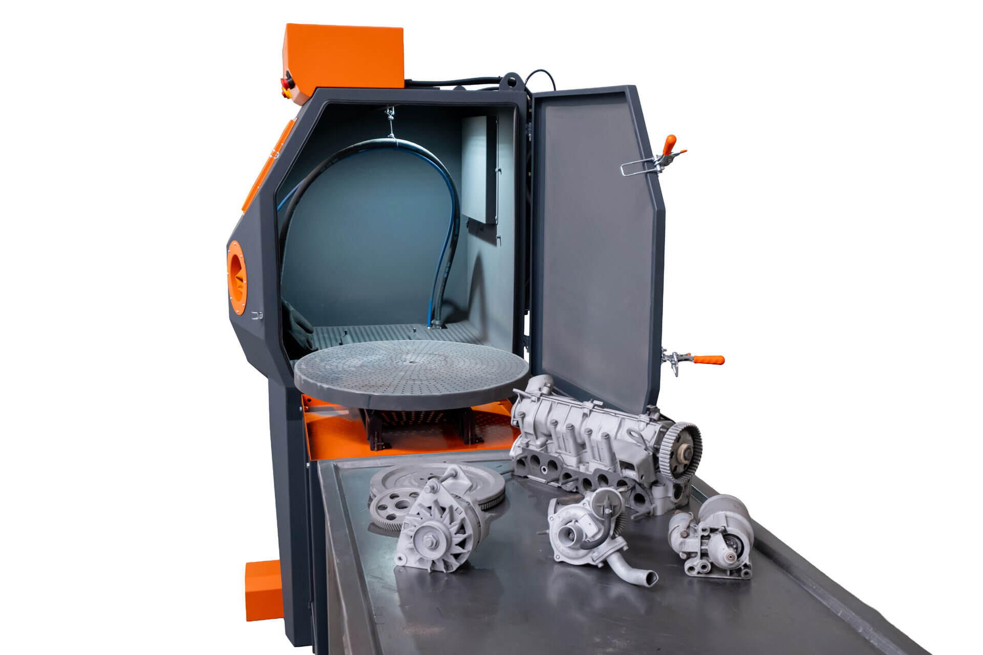 Operatör dostu pnömatik ayak pedalı, parçaların kolayca konumlandırılmasına ve homojen bir kumlama sağlanmasına yardımcı olur. 650 mm çapındaki döner sepet, 100 kg’a kadar yük kapasitesi ile parçaların tüm yüzeylerinde eşit temizlik sağlar. Manuel yükleme ve boşaltma standart olarak sunulurken, otomatik versiyon opsiyonel olarak tercih edilebilir.
