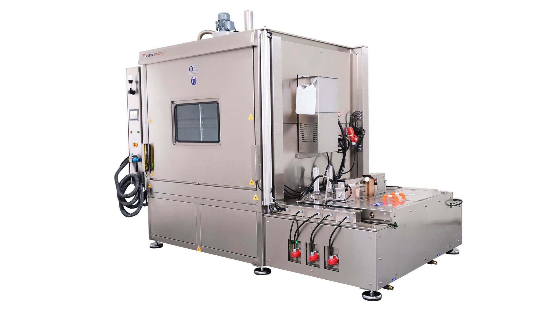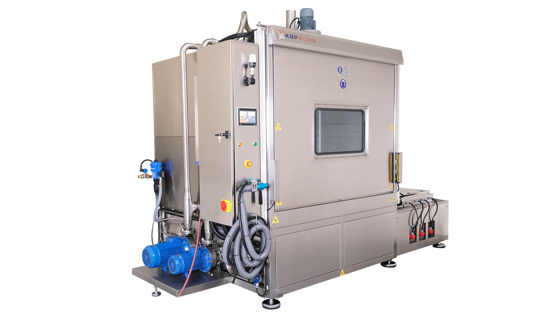 Döner sepet üzerine yerleştirilen ürünler, kapalı bir kabin içerisinde yüksek basınçlı ve deterjanlı suyla temizlenir. İhtiyaca göre yıkama, durulama, kurutma üniteleri ve hassas filtrasyon gibi ek proseslerle desteklenerek temizlik kalitesi artırılabilir.