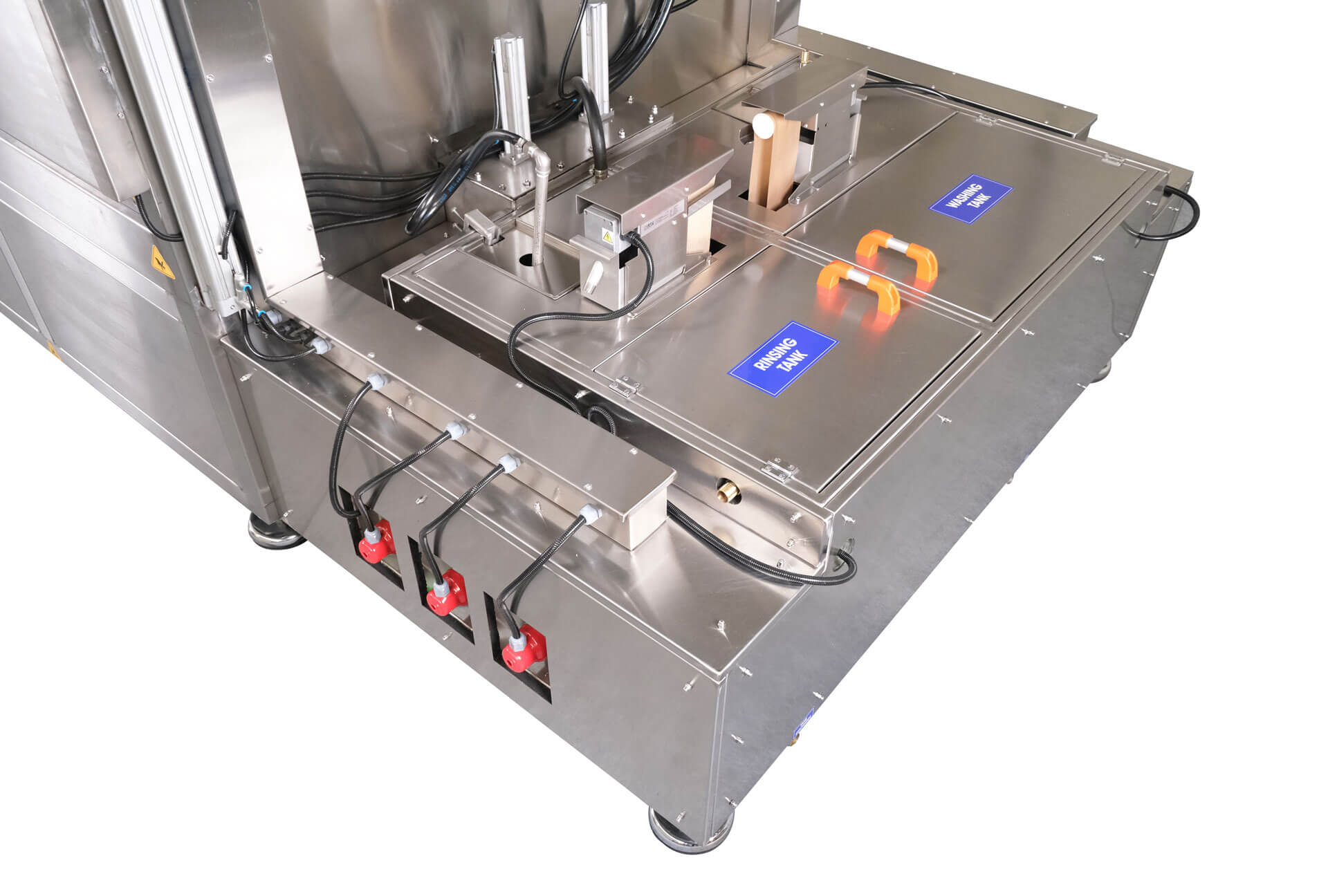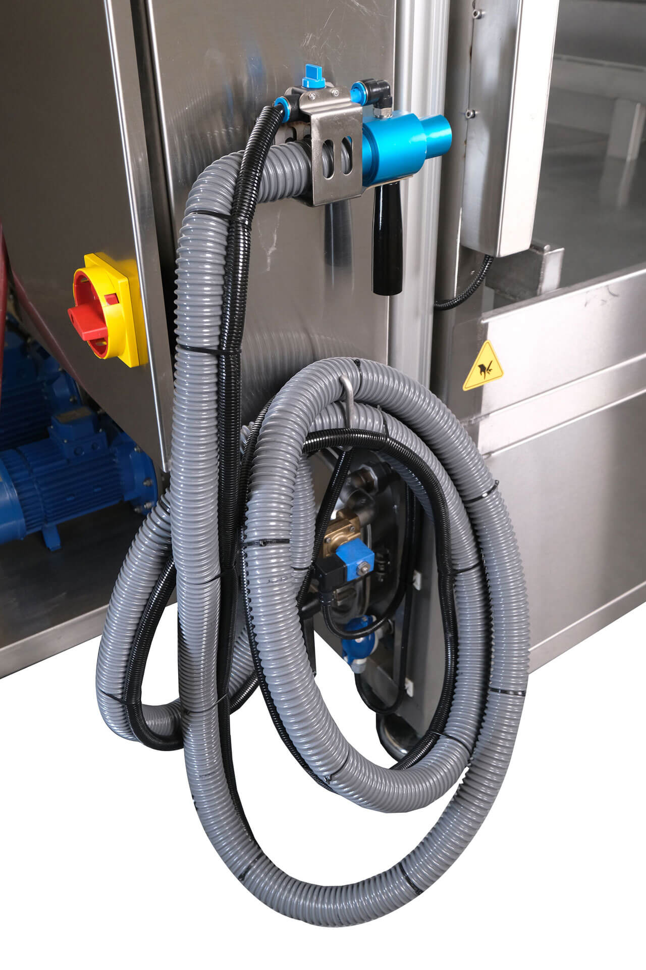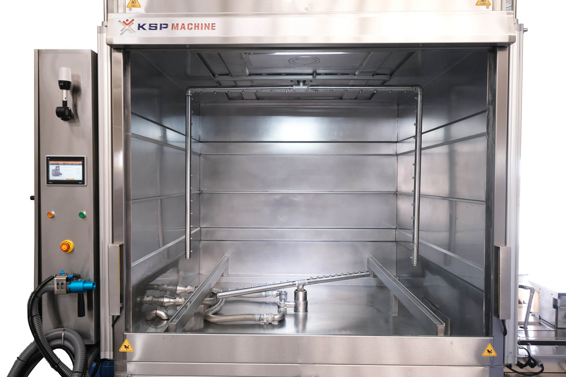Proses süresince sıcak su, makineye entegre borular üzerindeki püskürtücü nozullar aracılığıyla parçaların üzerine püskürtülür. Purge XLarge Serisi, işçilik, su, deterjan, elektrik ve zamandan tasarruf sağlamak amacıyla özel olarak tasarlanmıştır.