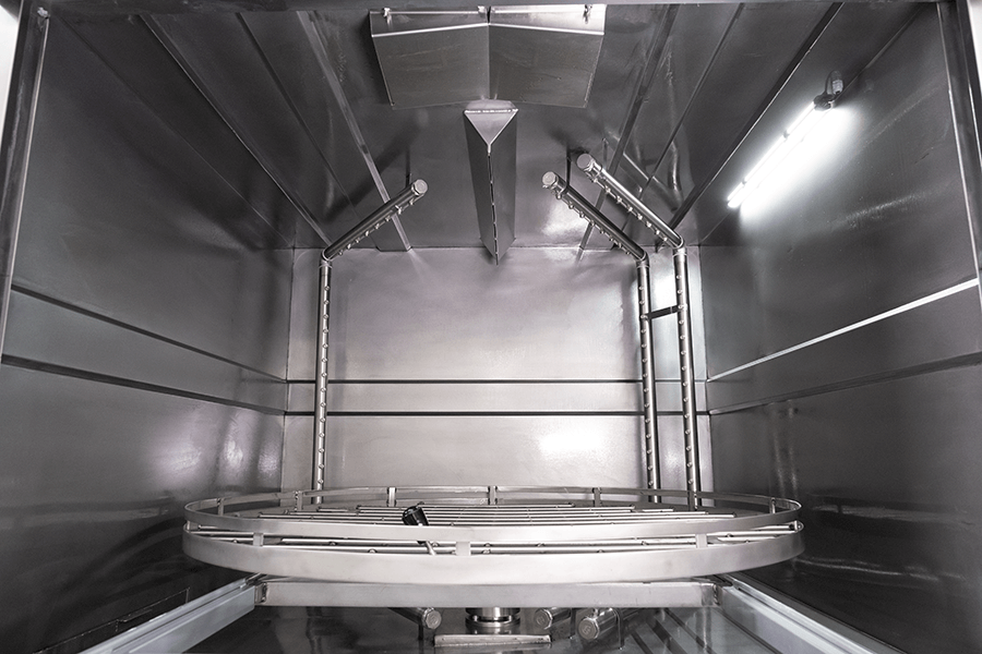 Döner sepet üzerine yerleştirilen ürünler, kapalı bir kabin içerisinde yüksek basınçlı ve deterjanlı suyla temizlenir. İhtiyaca göre yıkama, durulama, kurutma üniteleri ve hassas filtrasyon gibi ek proseslerle desteklenerek temizlik kalitesi artırılabilir.