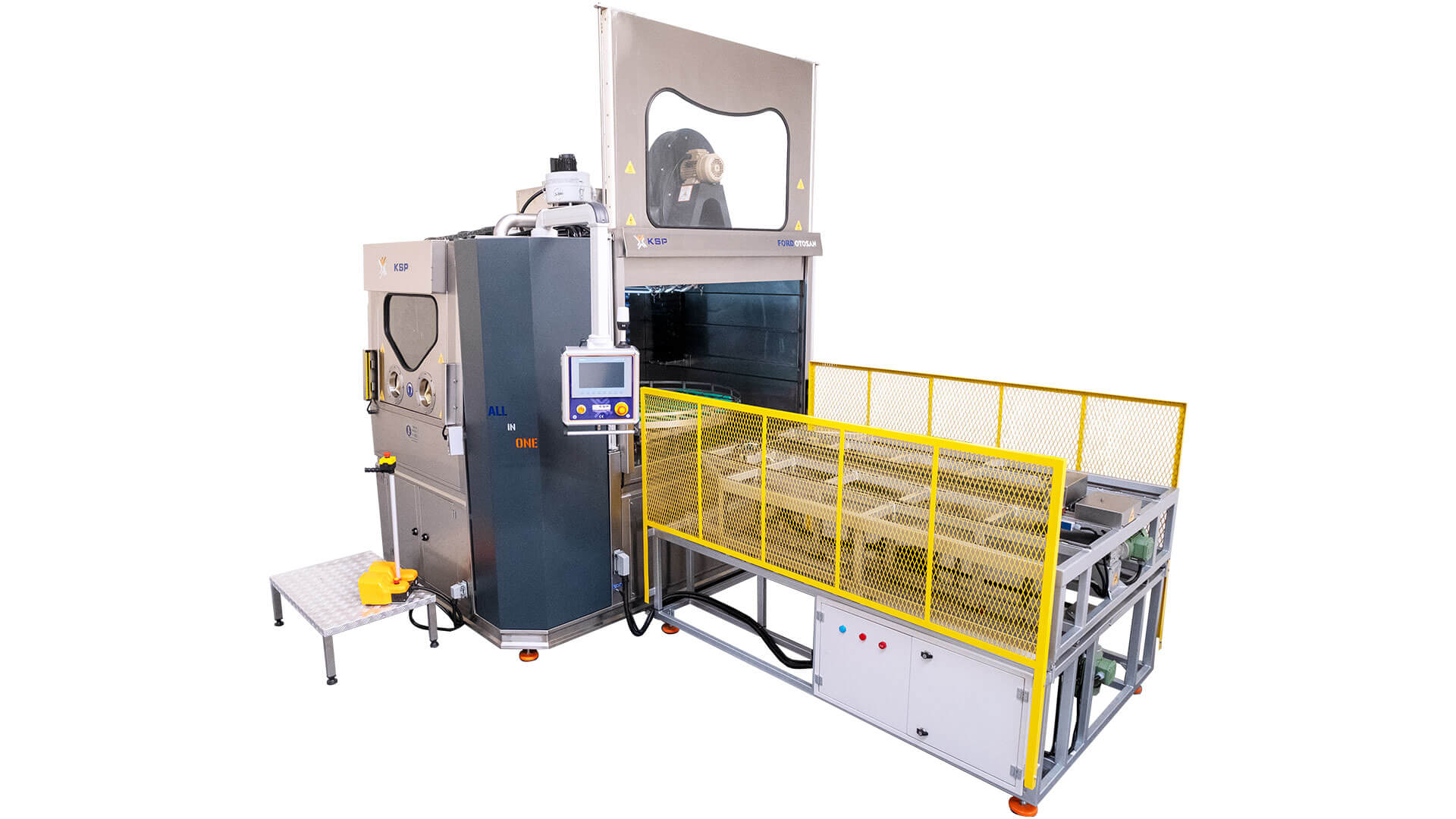 KSP Makine’nin geliştirdiği ALL in ONE, otomatik sprey yıkama, durulama ve manuel yüksek basınç ünitelerini tek gövdede sunan yenilikçi bir parça yıkama makinesidir. Tek makinede çoklu çözüm sağlayarak alan tasarrufu, esnek kullanım ve yüksek performans sunar.
