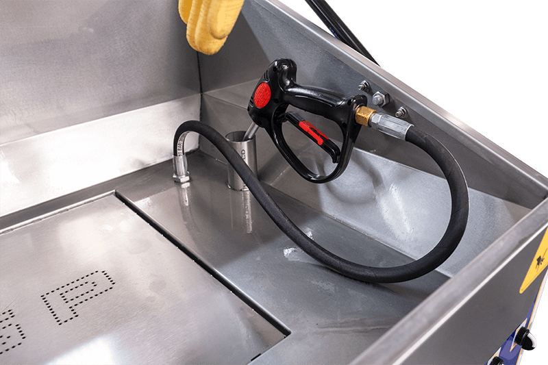 Kabin içindeki hava tabancası, yıkama sonrası parçaların hızlıca kurutulmasına yardımcı olur. Makine içinde biri tank girişinde, diğeri çıkışında olmak üzere iki adet filtre bulunur. Bu filtrasyon sistemi sayesinde kullanılan su ve deterjanın ömrü uzar, filtreler yıkanabilir ve yeniden kullanılabilir olduğu için ekstra giderler önlenmiş olur. Ayrıca su sıcaklığını gözlemlemeye yarayan gösterge ve manometre, kullanıcıya tam kontrol sağlar.